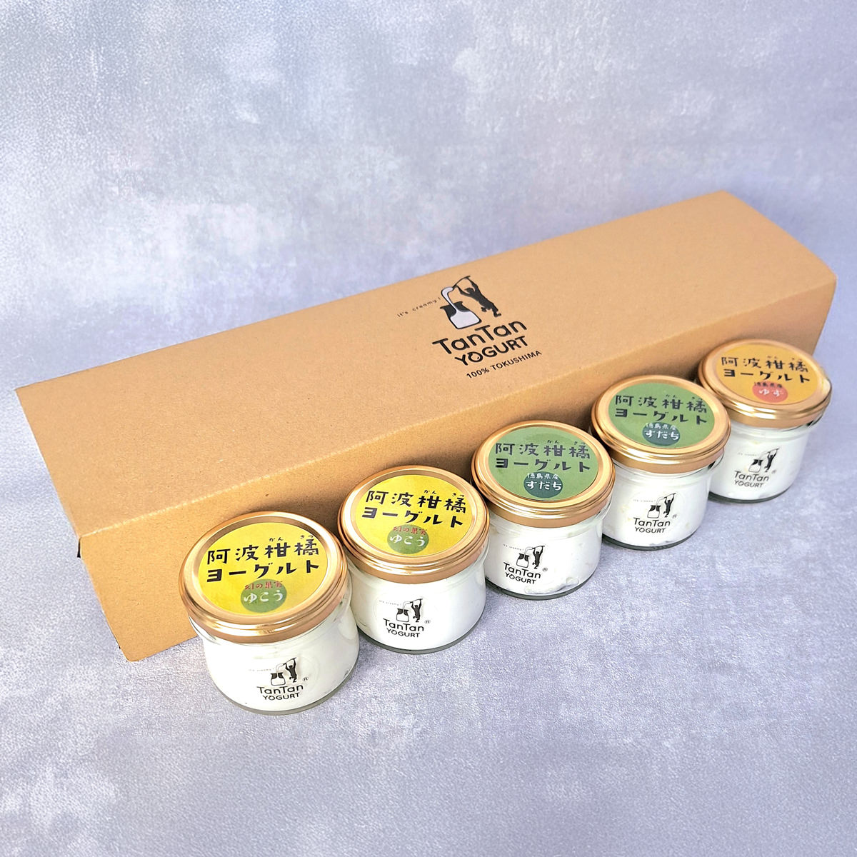 「タンタンヨーグルト 阿波柑橘ヨーグルト 食べ比べセット」は、徳島県名産の柑橘「柚香(ゆこう)・すだち・柚子」を使用した、3種フレーバーの水切りヨーグルトの詰め合わせです。「柚香」は柚子の突然変異種で、日本では主に徳島県で栽培されている、幻(まぼろし)の柑橘とも言われる逸品です。水切りヨーグルトの原材料となる牛乳は、1年を通して気温が安定している阿讃山脈(あさんさんみゃく)で育った乳牛から採れたものを使用しています。柑橘果汁は、全て徳島県で採れたものを使用し、タンタンヨーグルトにミックスしました。自慢のヨーグルトは、タンタンヨーグルト工房のオーナーが母親から受け継いだ秘伝製法で発酵させた、トロみのあるものとなっております。朝食のお供、デザート、おやつなどとして、お取り寄せでお楽しみください。