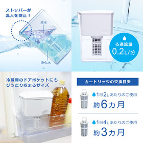 カートリッジの交換目安は1日あたり2Lのご使用で約6カ月(1日4Lあたりのご使用で約3カ月)です。