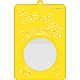 メンバー直筆デザイン入りの缶バッジケースキーホルダー。
