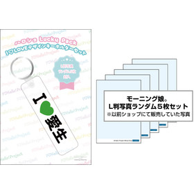 『ハロショLucky Pack 「I LOVEデザインキーホルダーセット」』は、I LOVEデザインキーホルダーとL判生写真ランダム5枚のセットです。