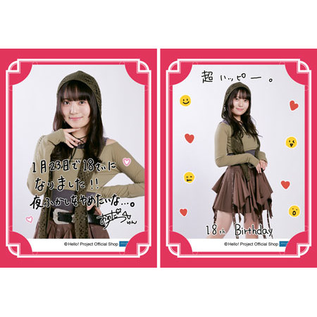 誕生日メンバーの直筆プリント入りL判写真2枚と、メンバーへの「バースデーメッセージ」が書けるカードが入っています。