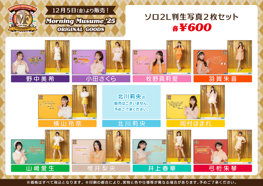 ※12/5開催予定の日付入りソロA5ワイドサイズ生写真、ソロ2L判生写真4枚セットA・B・C、2L判生写真4枚セットを販売いたします。