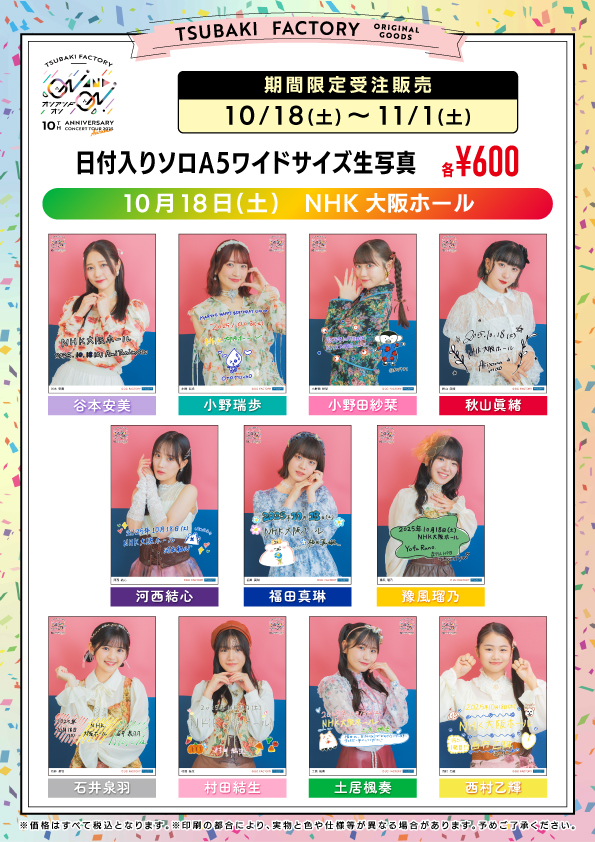 10/4~10/11開催予定の各会場の日付入りソロA5ワイドサイズ生写真を販売いたします。